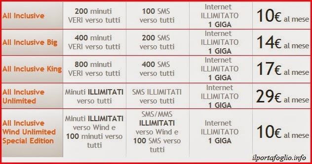 Tariffe All Inclusive Wind, luglio-agosto